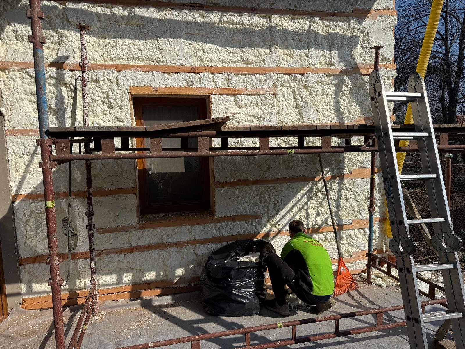 U rekonstrukcí starších RD je výhoda pěny v tom, že stačí vytvořit dřevěný rastr. Pěna se pak postará o dokonalou vrstvu izolace, která se dostane opravdu všude.